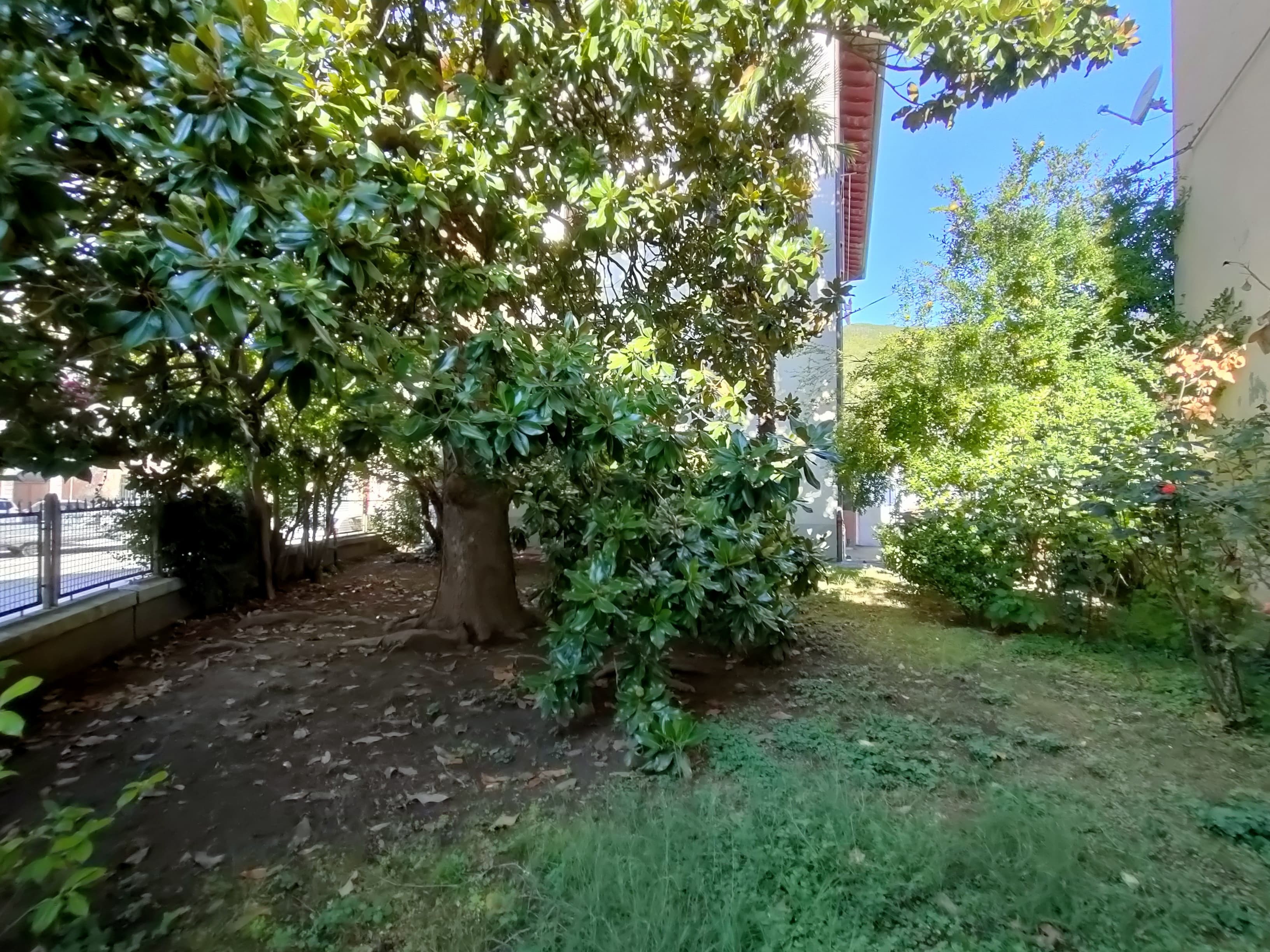 Dal salone si può accedere al giardino privato e piantumato con dei bellissimi alberi.