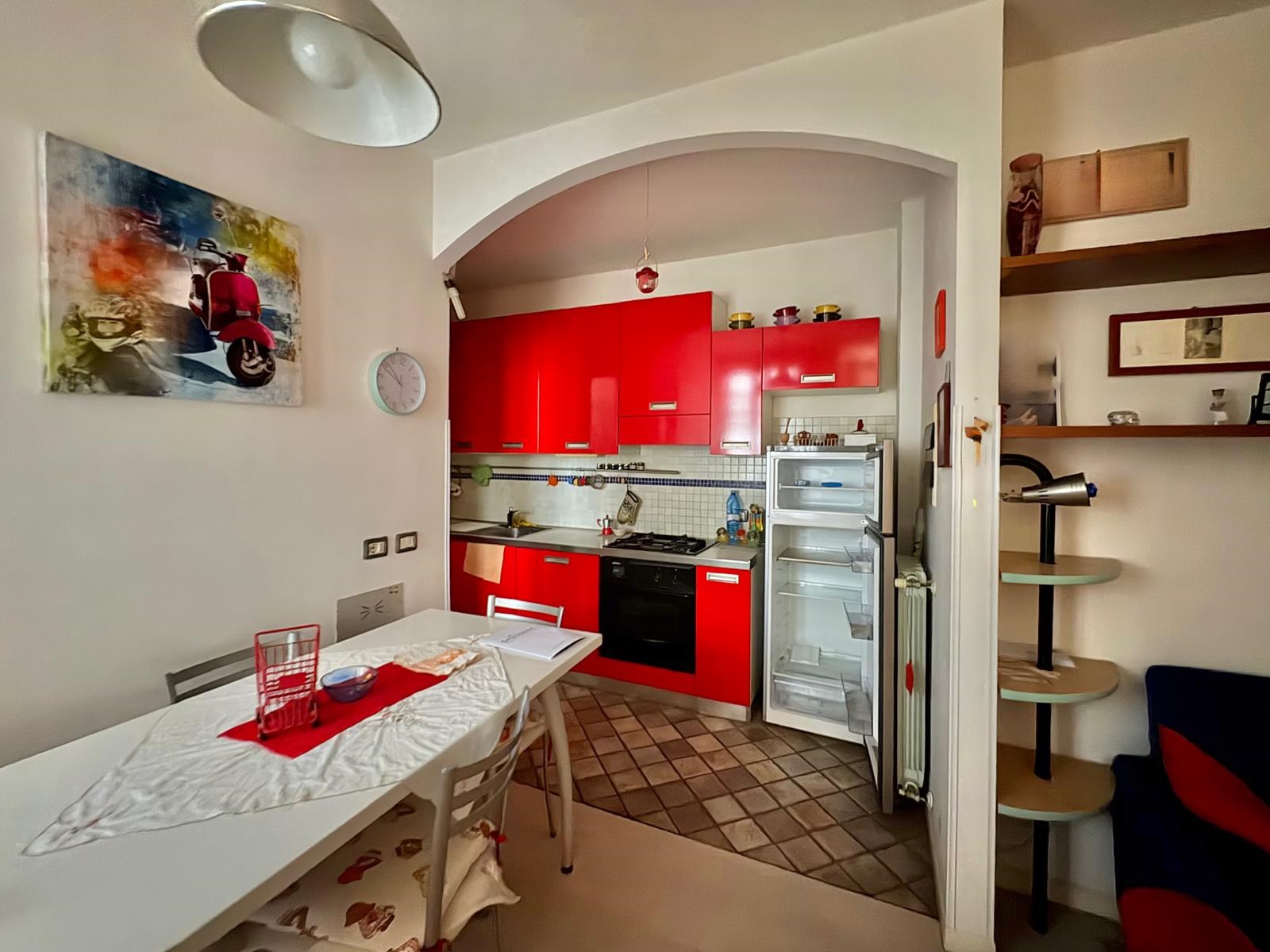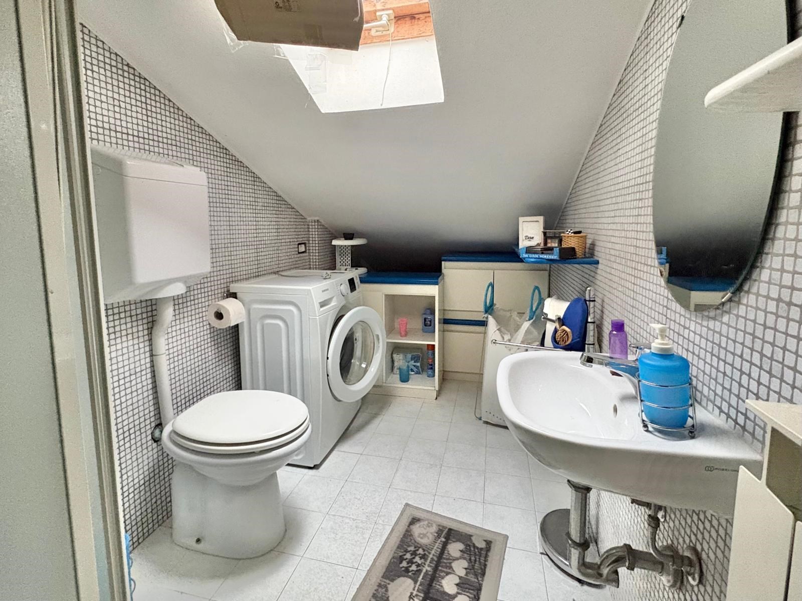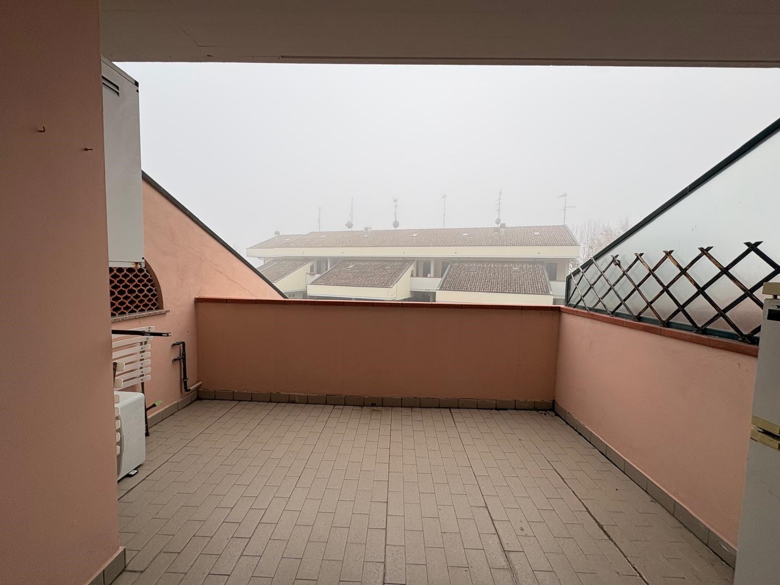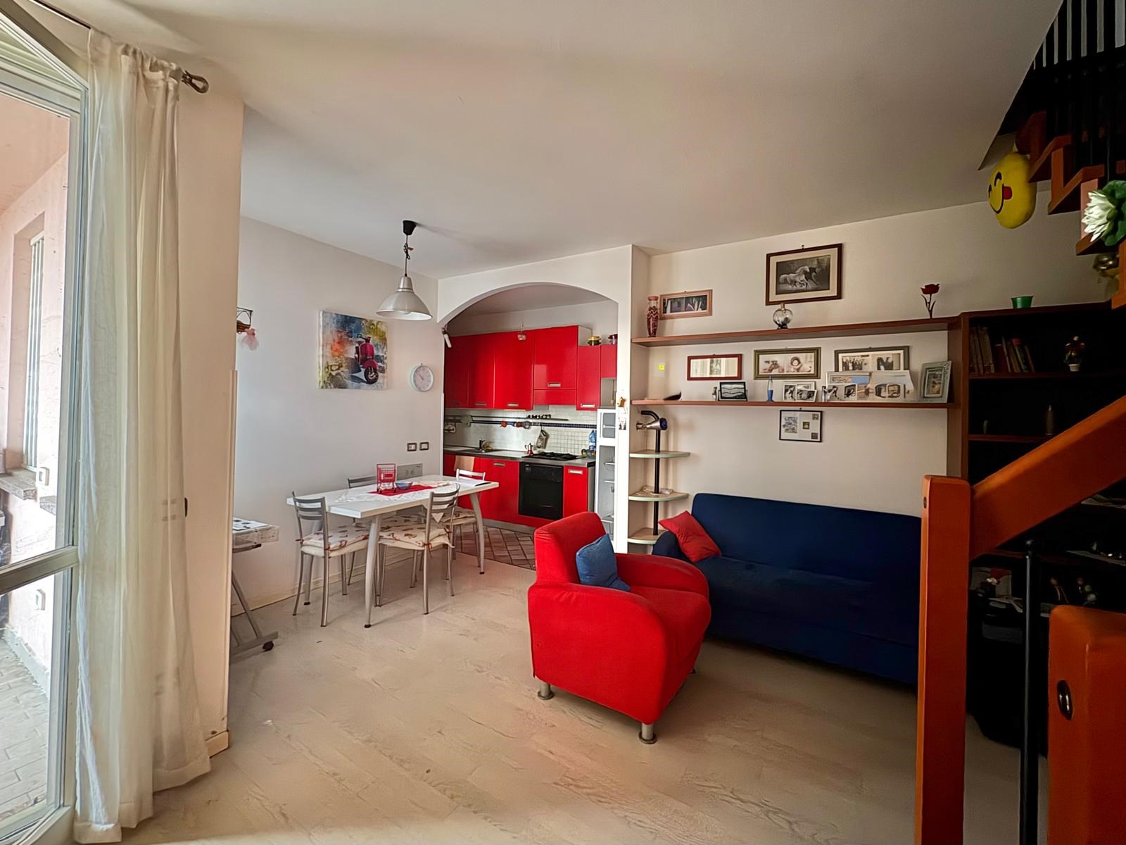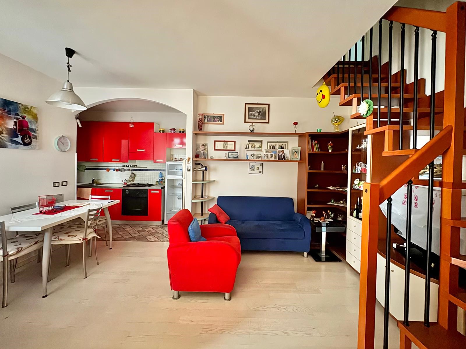 L'appartamento è disposto su due livelli, al piano primo con ingresso semi-indipendente da loggia, ampio soggiorno con angolo cottura, studio mansardato, terrazzo vivibile e bagno finestrato