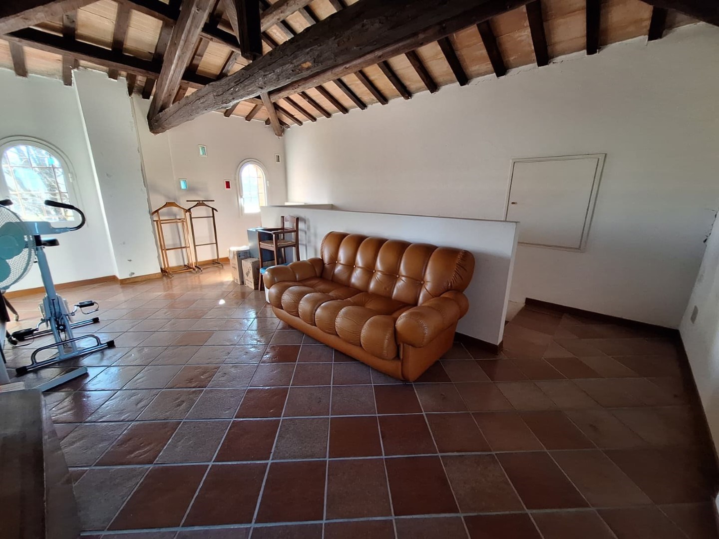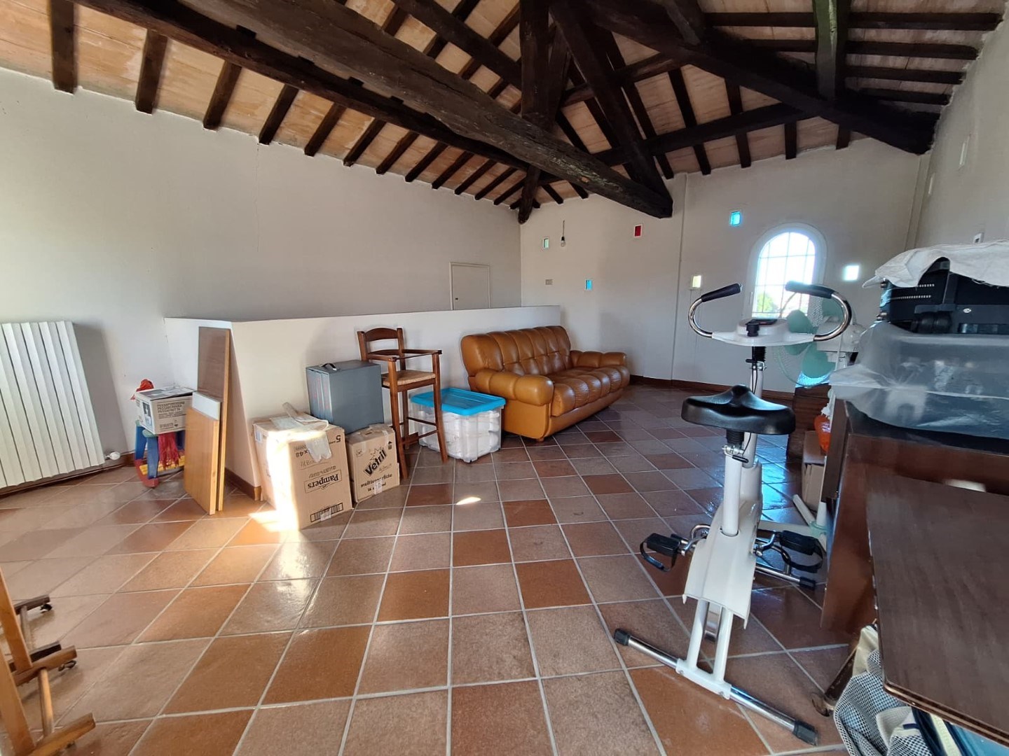Fiore all’occhiello è la suggestiva torretta mansardata posta al secondo piano, con travi in legno a vista, uno spazio unico da trasformare in zona relax