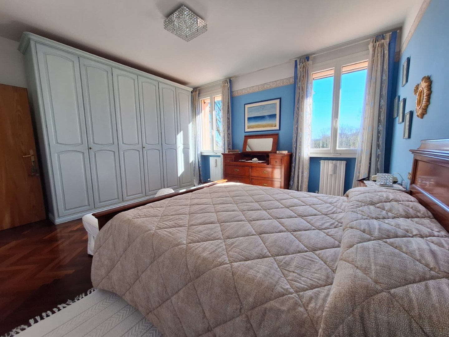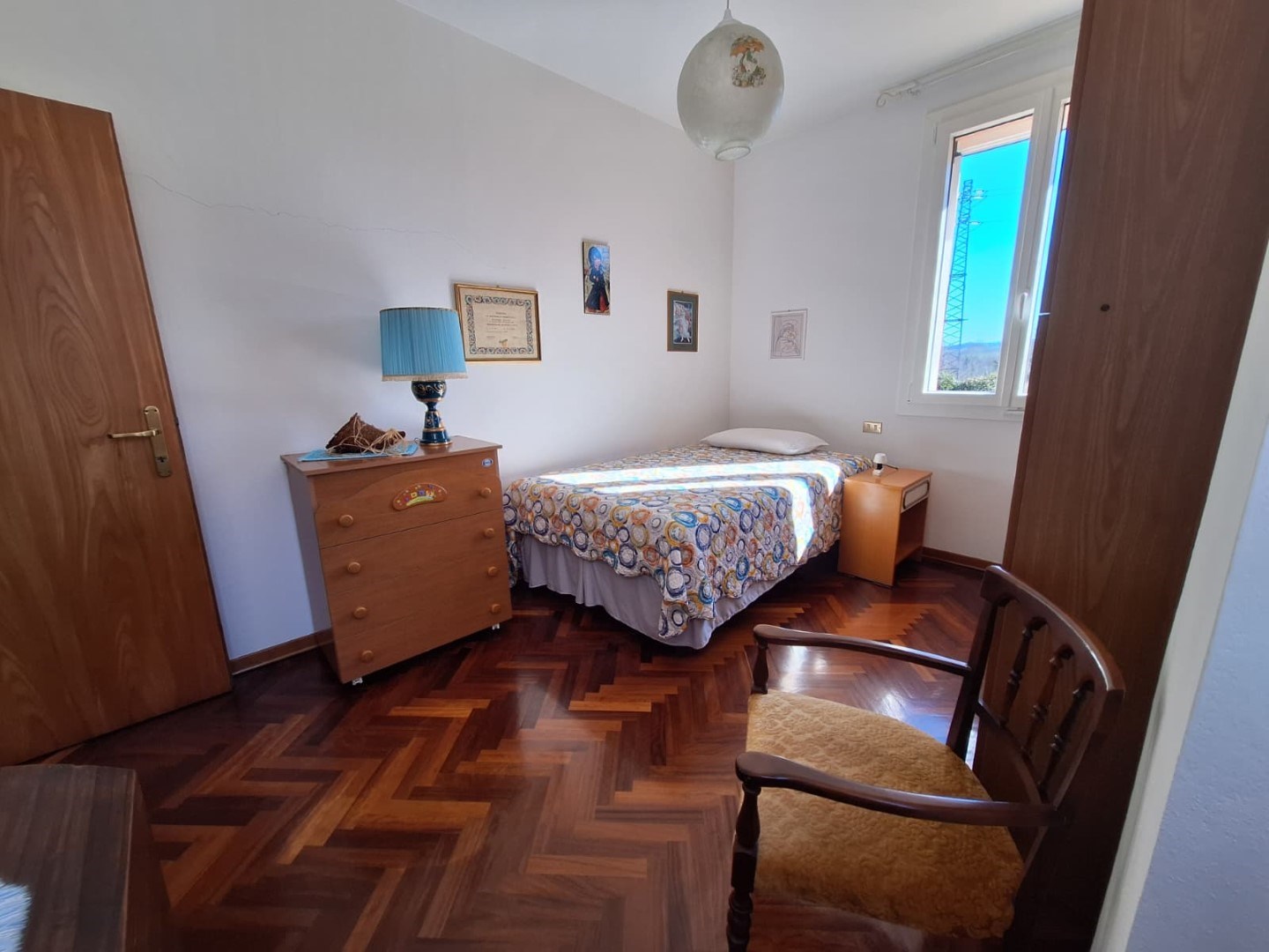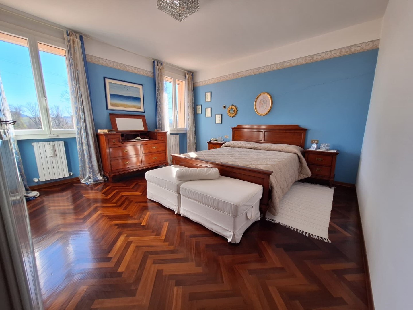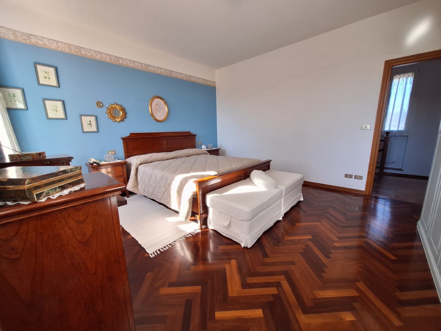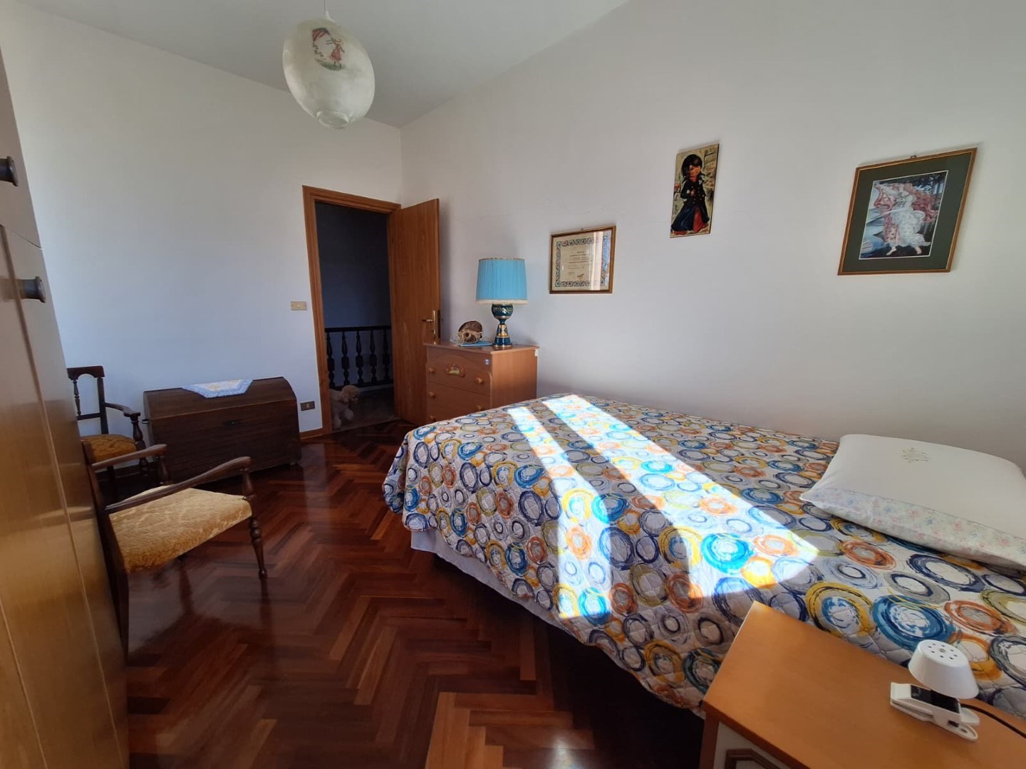 Al primo piano troviamo la zona notte composta da tre ampie camere da letto (due matrimoniali e una doppia) con caratteristico parquet, bagno finestrato con vasca e uno studio ideale per lavorare in tranquillità.