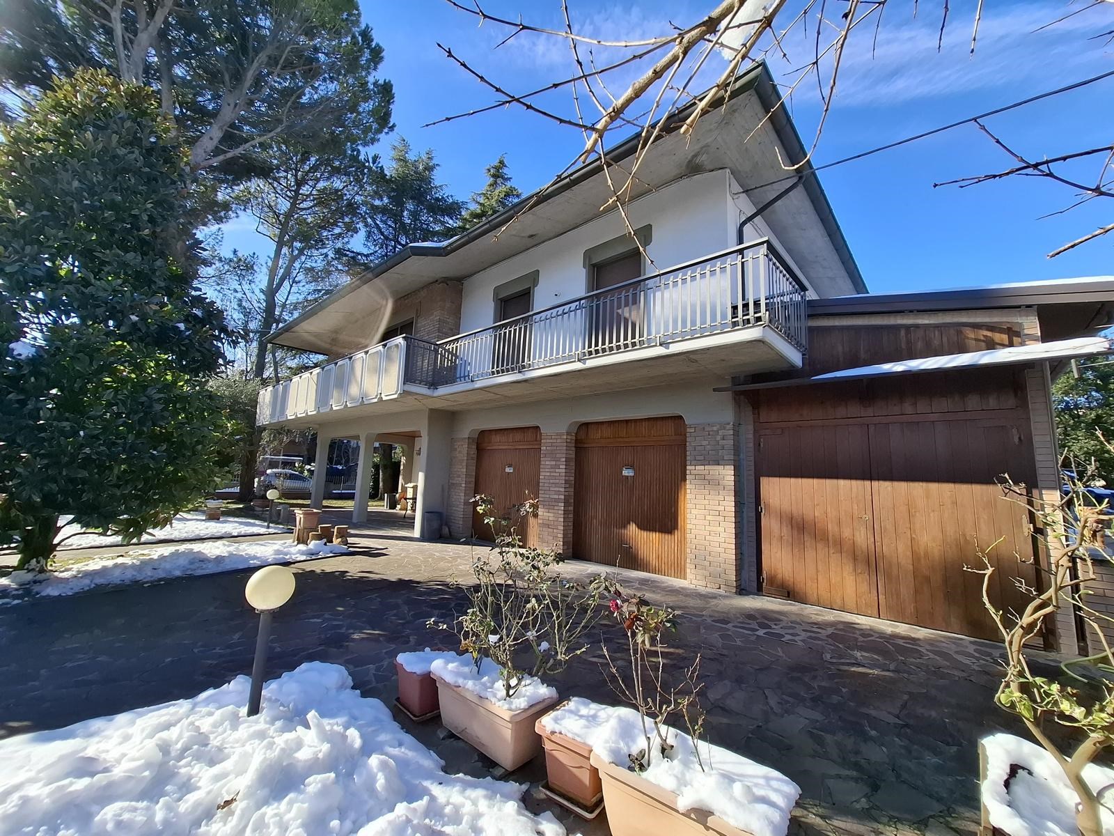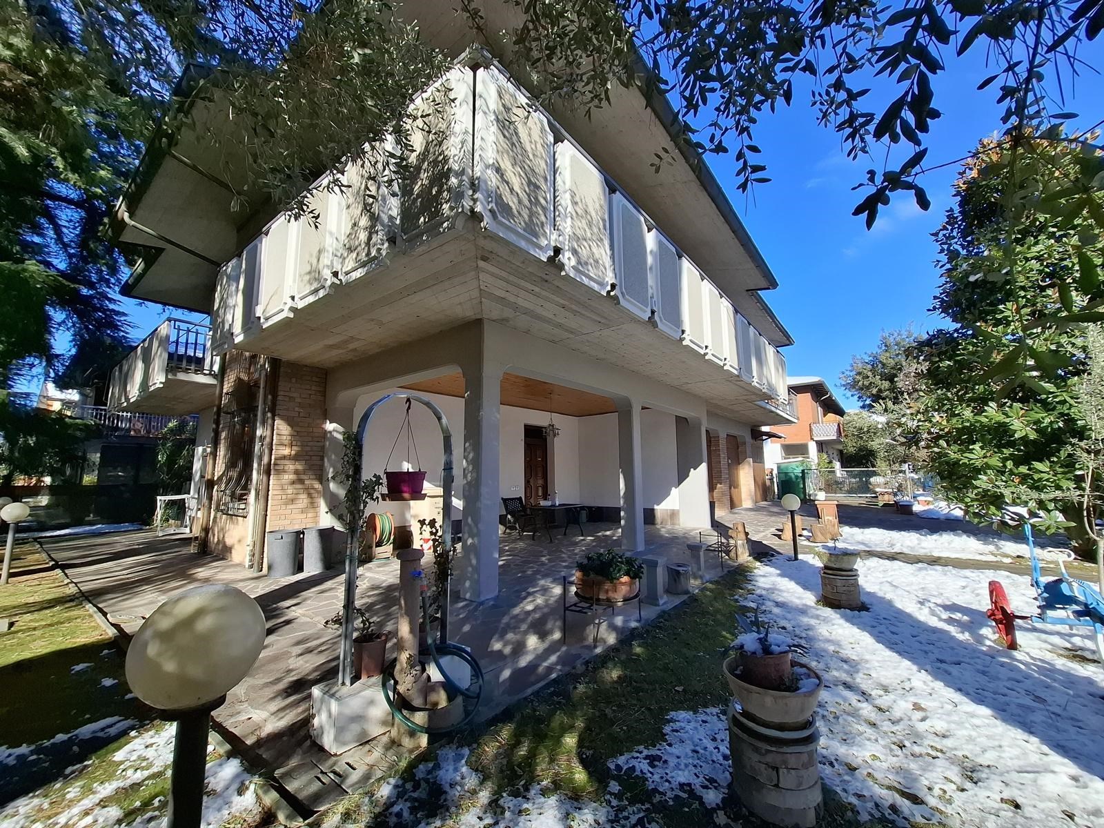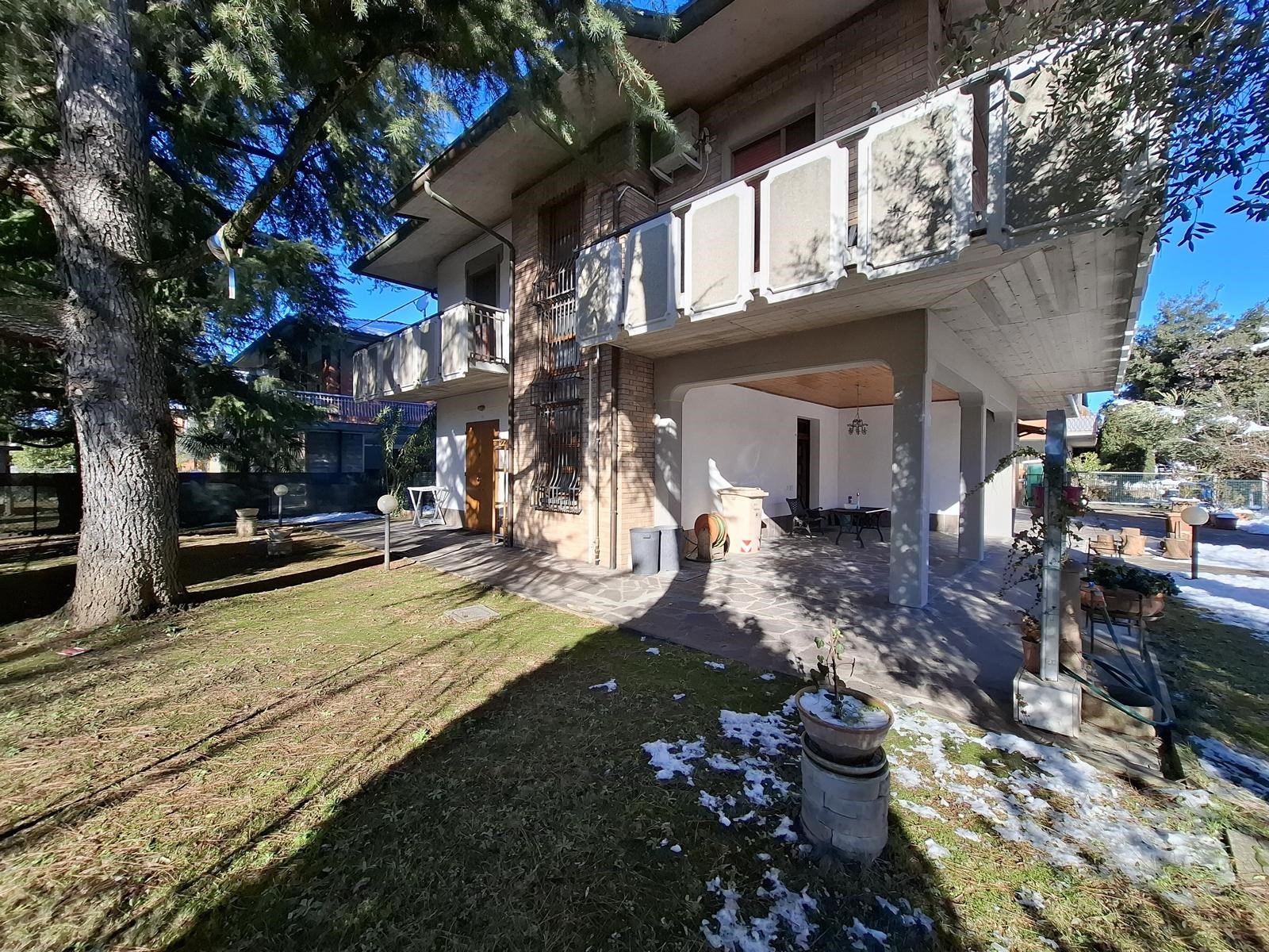 Elegante villa signorile costruita a fine anni '70, posta al centro di un ampio lotto di 730mq circa e dotata di ampio e verde giardino privato su tutti i quattro lati liberi dell'abitazione, con accesso carrabile all'area cortilizia d'accesso ai garage dove è possibile avere 2/3 posti auto interni