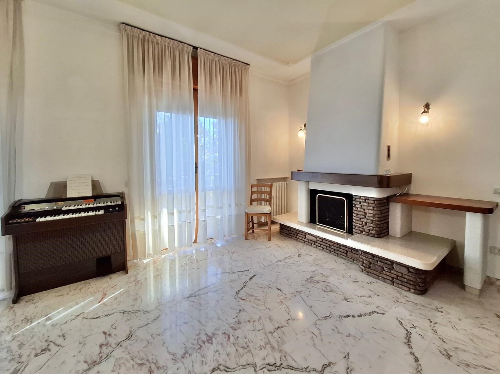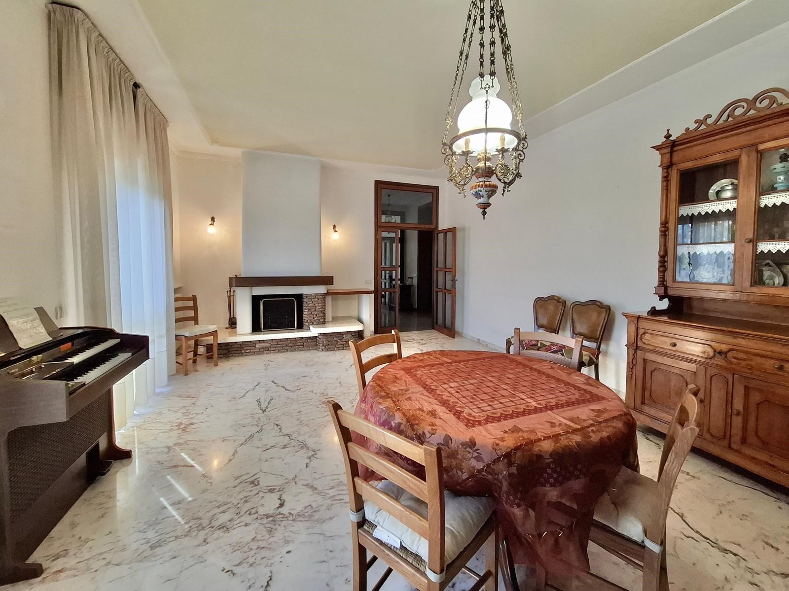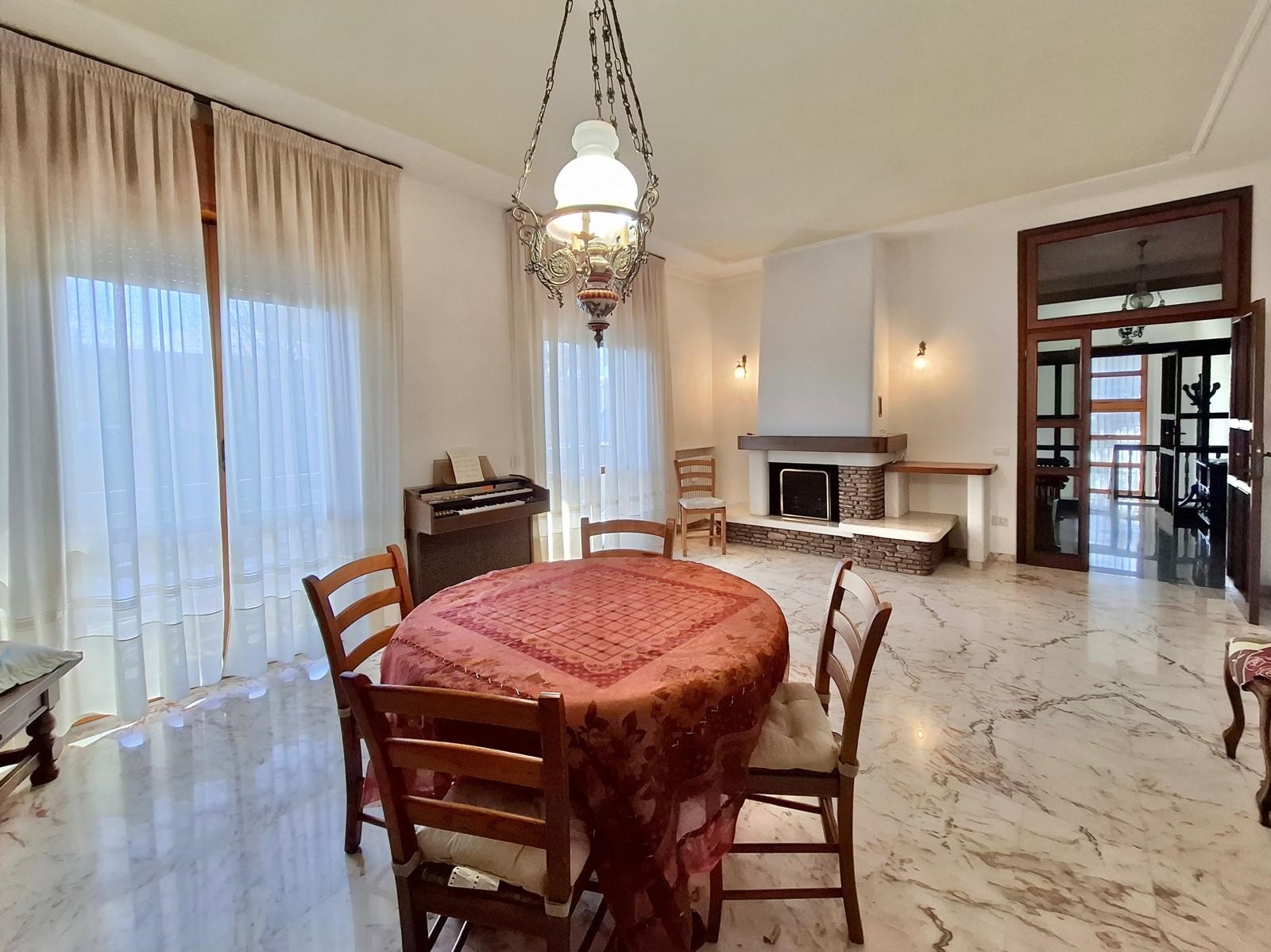 Elegante villa signorile costruita a fine anni '70, posta al centro di un ampio lotto di 730mq circa e dotata di ampio e verde giardino privato su tutti i quattro lati liberi dell'abitazione, con accesso carrabile all'area cortilizia d'accesso ai garage dove è possibile avere 2/3 posti auto interni