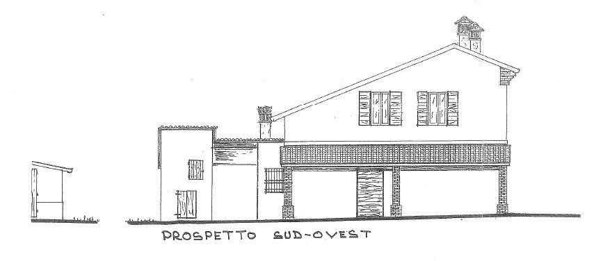 Attualmente la casa è divisa nel pian terreno con l'ampia taverna (ex stalla), sala con camino, cucina, camera/studio, bagno, garage doppio, tettoia e due cantine; nel piano superiore con la zona notte: tre comode stanze e 2 bagni.