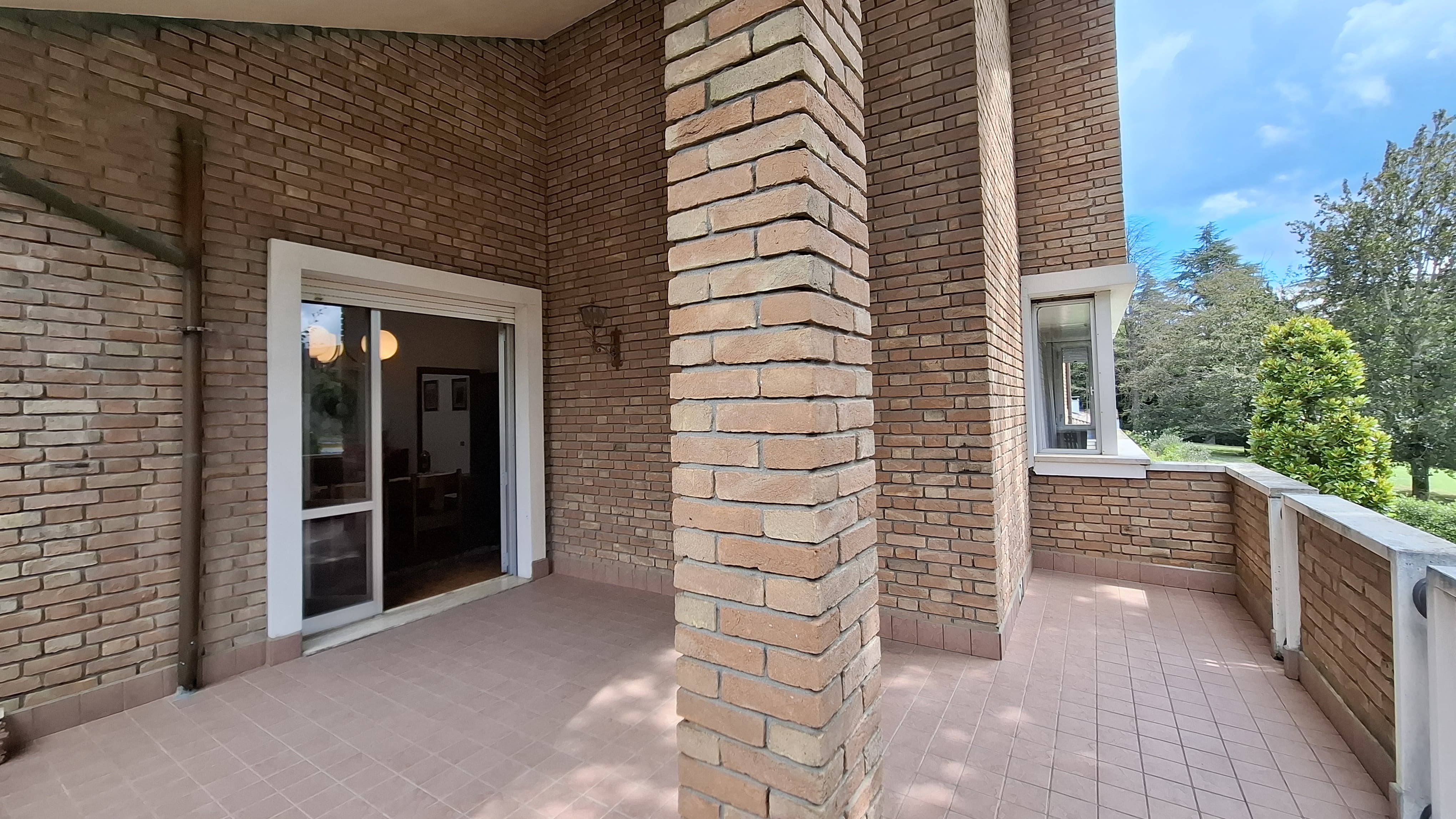 La proprietà si presenta con una facciata in mattoni a vista di grande pregio e un ampio giardino alberato che circonda l’abitazione su tutti i lati, offrendo zone di relax, aree pavimentate e spazi perfetti per ricevimenti all’aperto. L’accesso carrabile conduce a un garage di 30 mq e a una comoda area parcheggio.