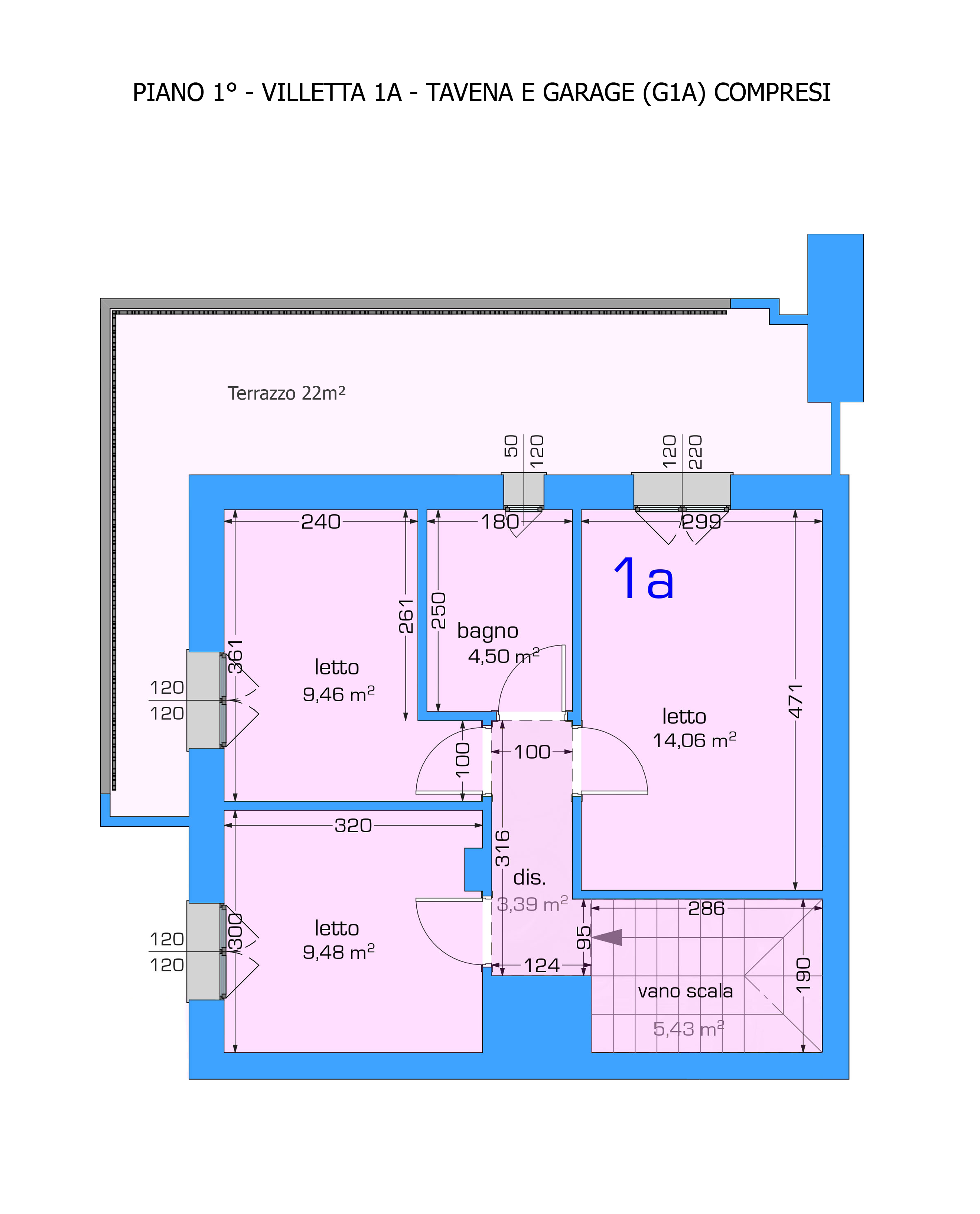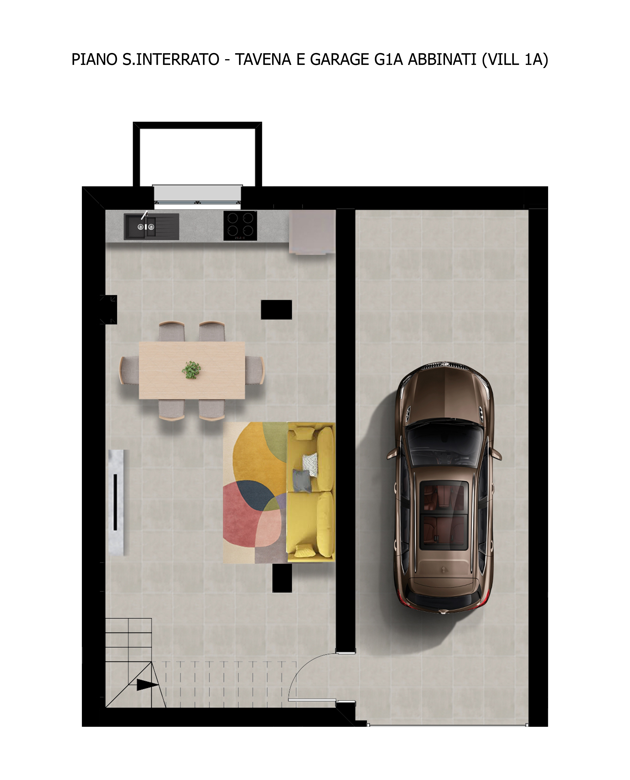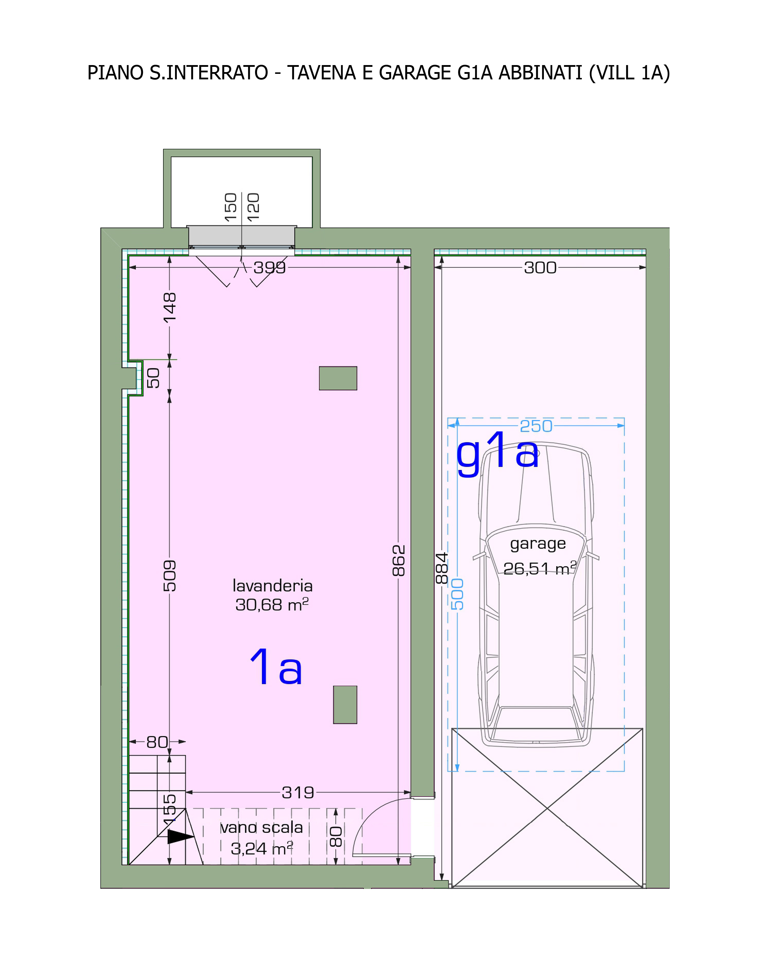 Scendendo collegata internamente all’abitazione abbiamo l'ampia taverna di 30,5 mq con garage di 26,5 mq comunicante
