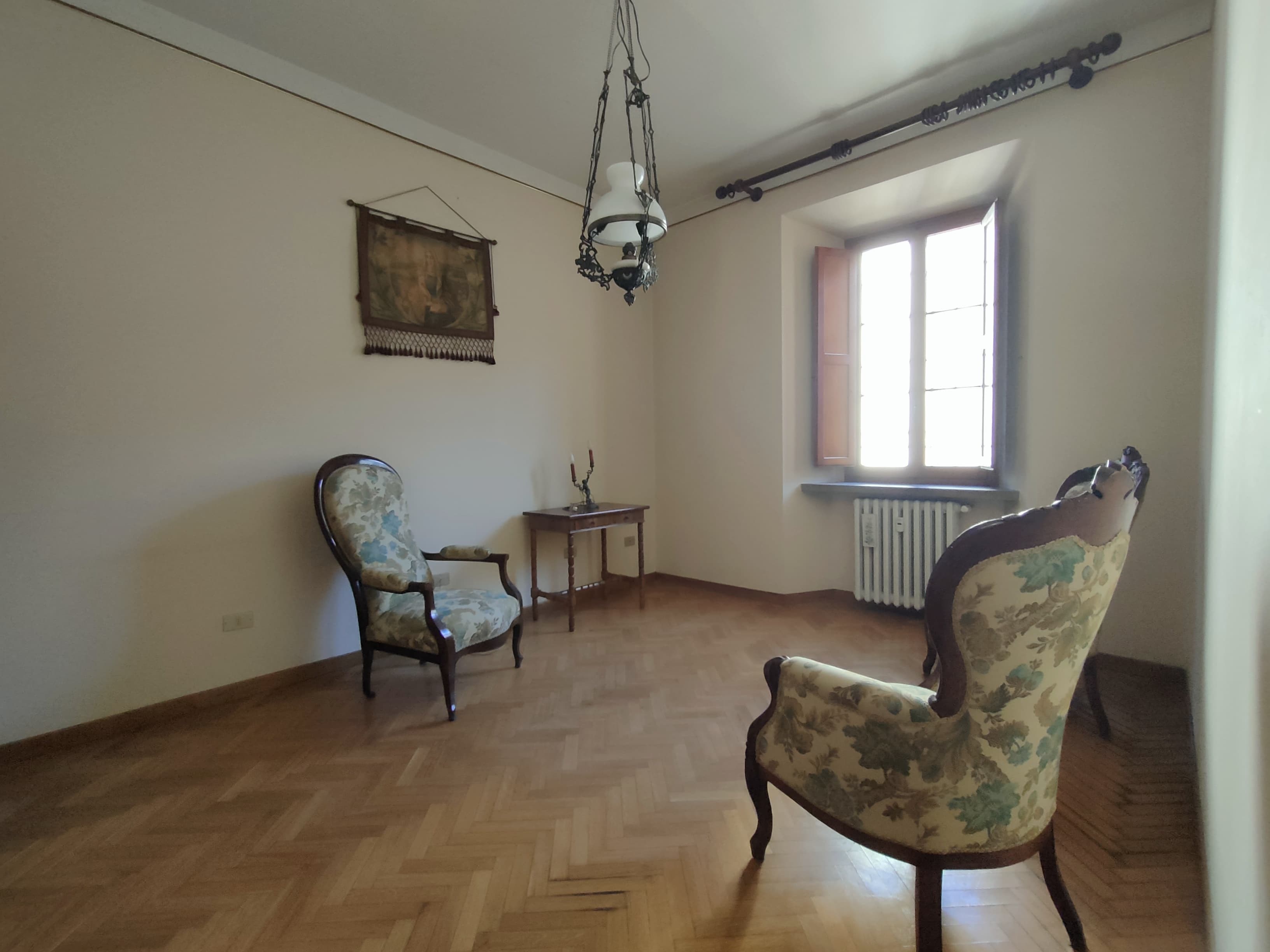 L'appartamento si trova al piano terra ed è dotato di ingresso indipendente. Entrando troviamo un ampio disimpegno che divide la cucina dal grande salone, il quale si potrebbe anche dividere per creare due stanze separate. La zona notte è composta da 2 camere da letto matrimoniali ed il bagno finestrato.