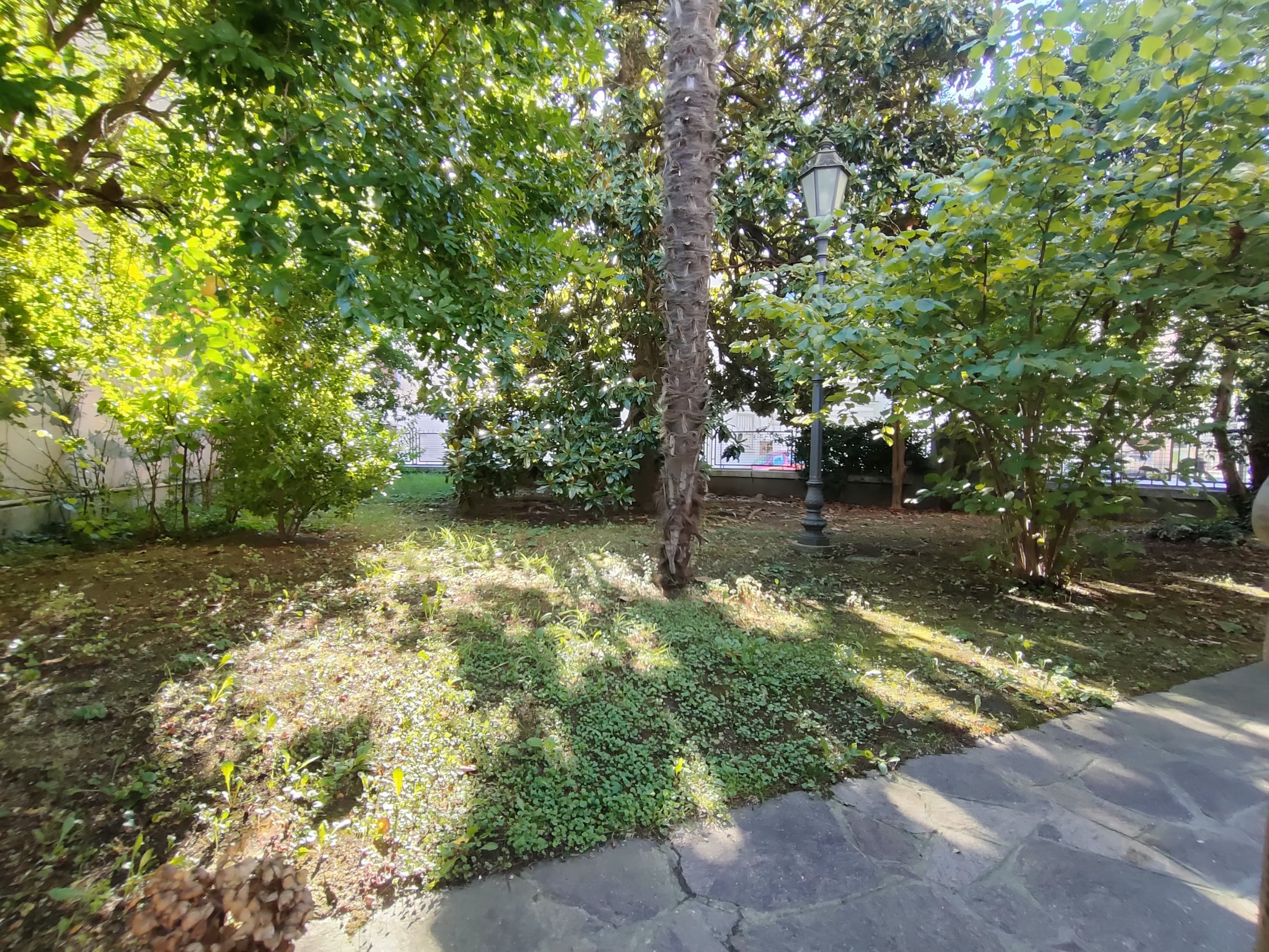 Dal salone si può accedere al giardino privato e piantumato con dei bellissimi alberi.