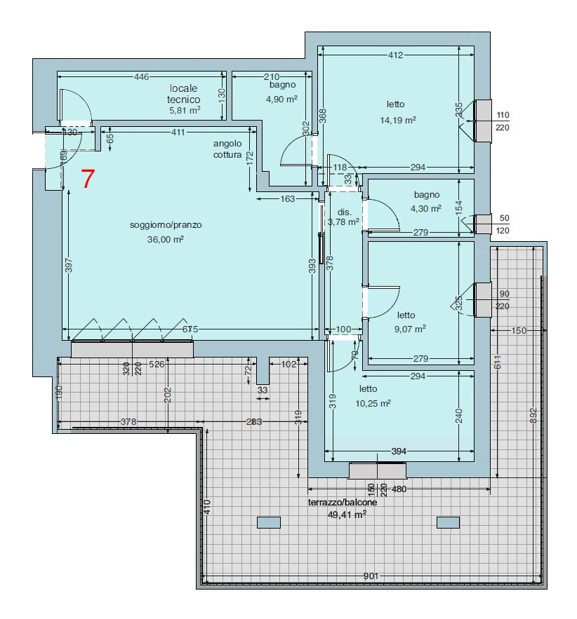 L'immobile è posto al primo ed ultimo piano, composto dall'ampio e luminoso soggiorno di 30mq con zona living e cucina da cui si può accedere allo splendido terrazzo di 50mq con vista sul parco, reparto notte con tre comode camere da letto, due bagni e un comodo locale tecnico perfetto per essere adibito a ripostiglio/lavanderia ad incrementare il comfort e la gestione della casa
