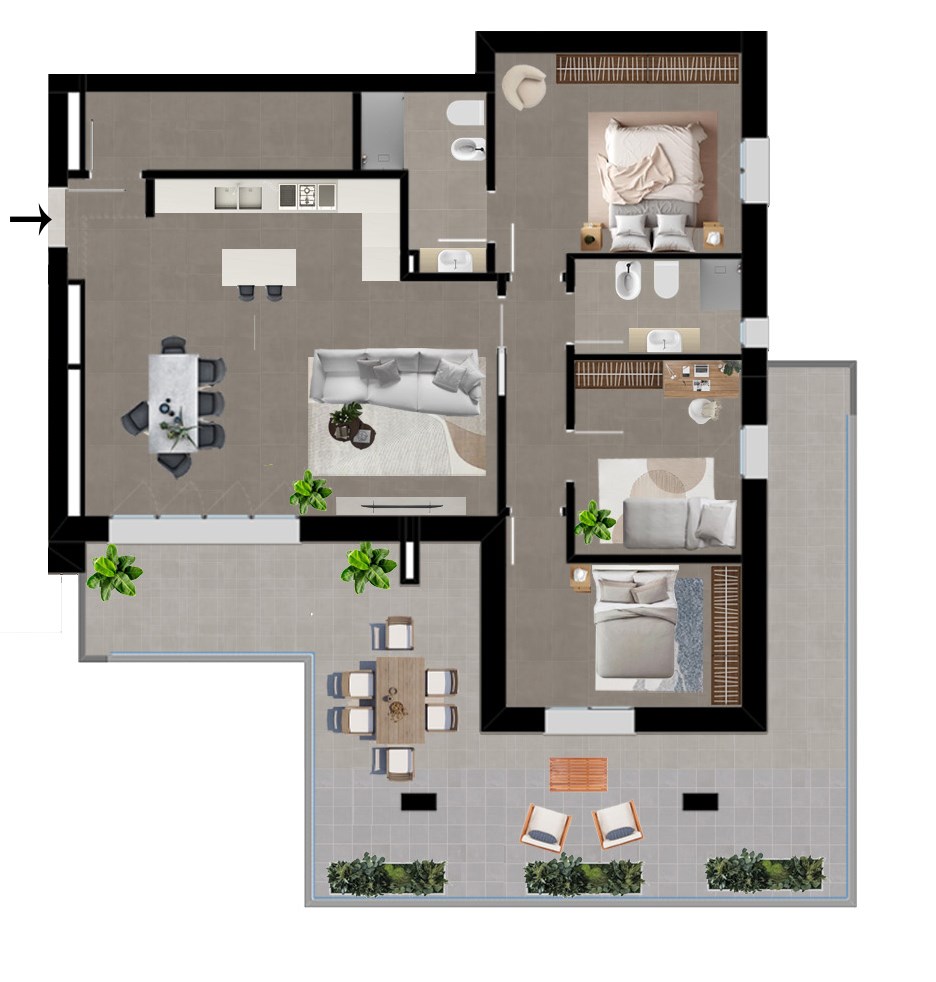 Elegante e raffinato appartamento inserito in moderno contesto di nuova realizzazione in una delle zone più esclusive della città, in posizione centralissima e riparata dal traffico, dotato di tutte le tecnologie all'avanguardia in merito a efficientamento energetico e risparmio di risorse, con massima classificazione energetica A4