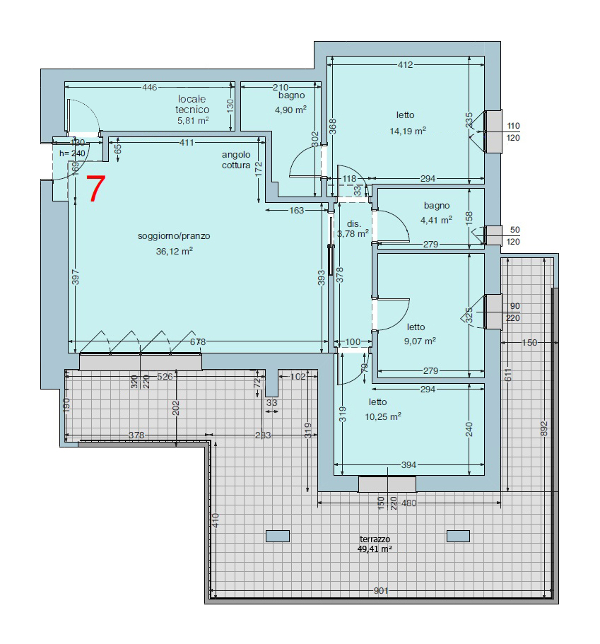 L'immobile è posto al primo ed ultimo piano, composto dall'ampia e luminosa zona giorno di 37mq con zona cottura accesso allo splendido terrazzo di 50mq, reparto notte con tre comode camere da letto, due bagni e un comodo locale tecnico perfetto per essere adibito a ripostiglio/lavanderia ad incrementare il comfort e la gestione della casa