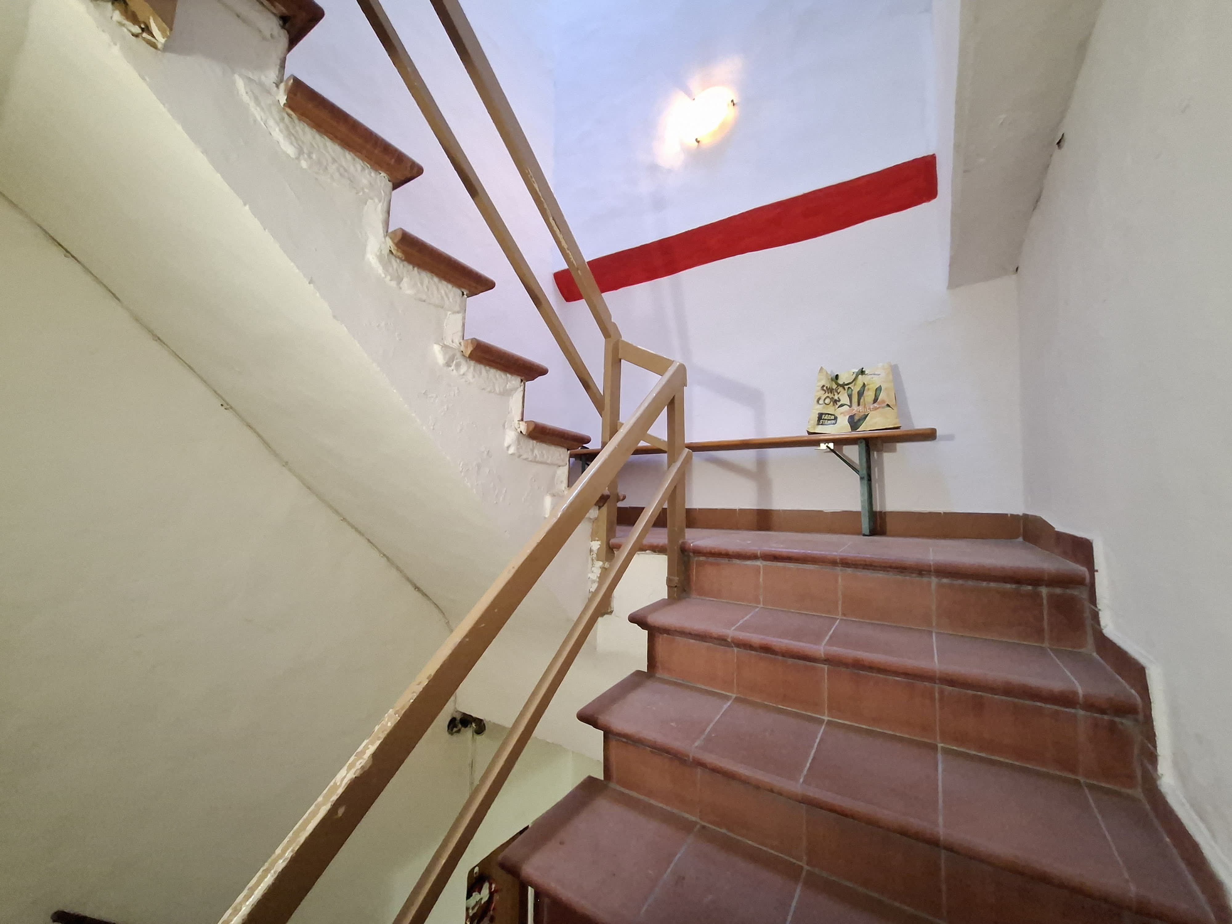Al primo piano si apre una luminosa zona giorno composta da sala e cucina abitabile, con bagno finestrato e balcone