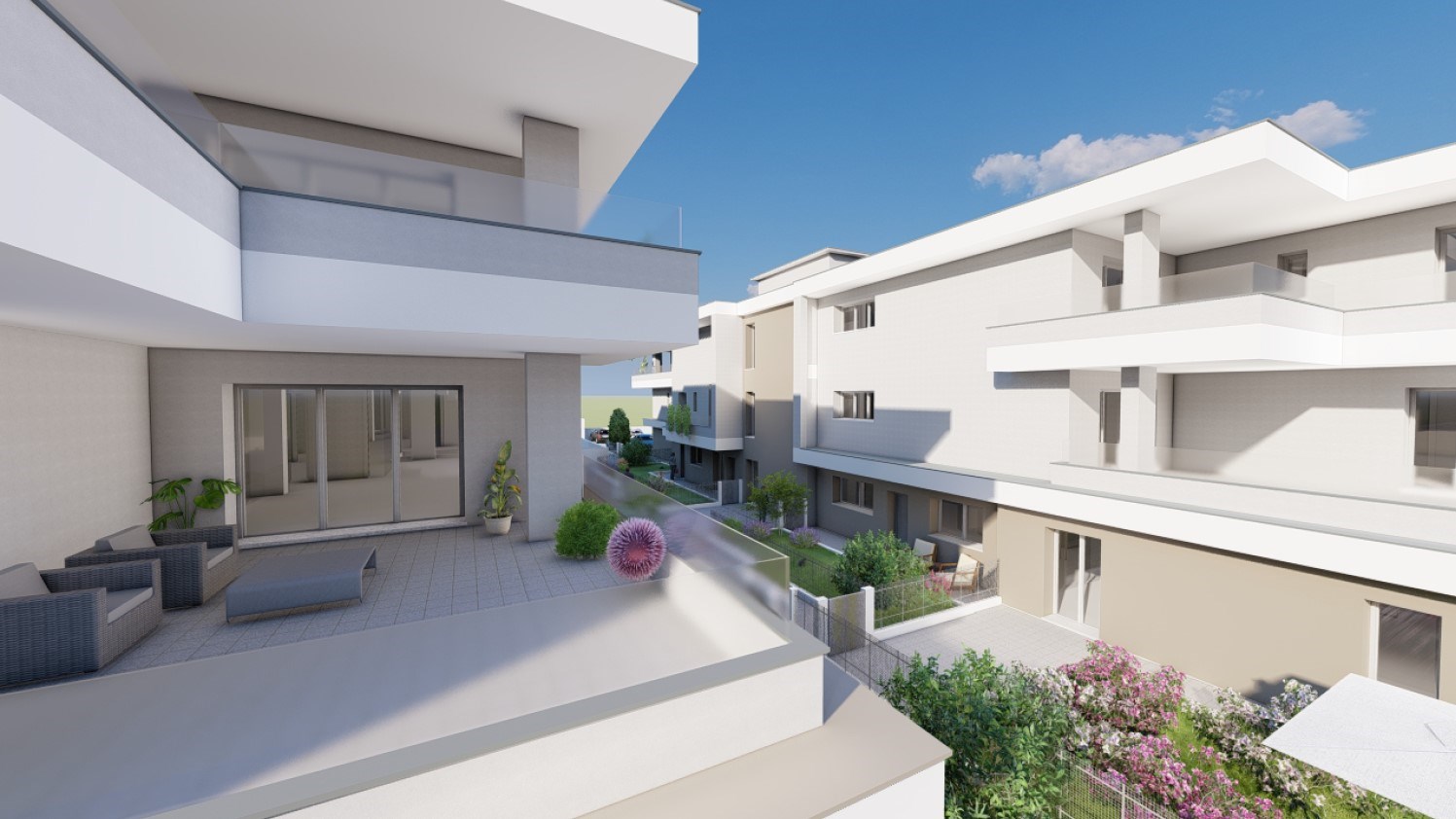 Elegante e raffinato attico inserito in moderno contesto di nuova realizzazione in una delle zone più servite della città, adiacente al centro e ad aree verdi pubbliche, dotato di tutte le tecnologie all'avanguardia in merito a efficientamento energetico con utilizzo di pannelli fotovoltaici e geotermia, con massima classificazione energetica A4