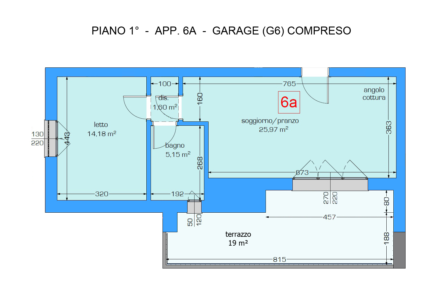 L'immobile è posto al primo piano ed è servito da ascensore, composto dal luminoso soggiorno con angolo cottura di 26mq con accesso al terrazzo di 19mq, reparto notte con una camera da letto e il bagno finestrato